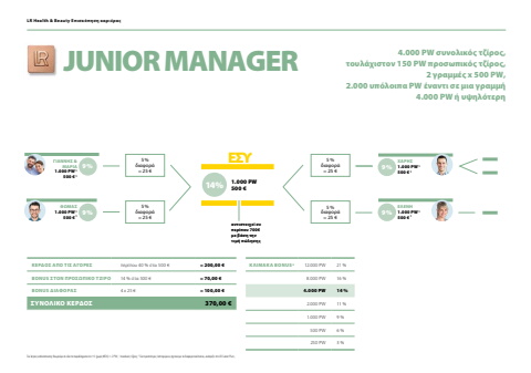 4.000 PW %u03c3%u03c5%u03bd%u03bf%u03bb%u03b9%u03ba%u03cc%u03c2 %u03c4%u03b6%u03af%u03c1%u03bf%u03c2,%u03c4%u03bf%u03c5%u03bb%u03ac%u03c7%u03b9%u03c3%u03c4%u03bf%u03bd 150 PW %u03c0%u03c1%u03bf%u03c3%u03c9%u03c0%u03b9%u03ba%u03cc%u03c2 %u03c4%u03b6%u03af%u03c1%u03bf%u03c2,2 %u03b3%u03c1%u03b1%u03bc%u03bc%u03ad%u03c2 x 500 PW,2.000 %u03c5%u03c0%u03cc%u03bb%u03bf%u03b9%u03c0%u03b1 PW %u03ad%u03bd%u03b1%u03bd%u03c4%u03b9 %u03c3%u03b5 %u03bc%u03b9%u03b1 %u03b3%u03c1%u03b1%u03bc%u03bc%u03ae 4.000 PW %u03ae %u03c5%u03c8%u03b7%u03bb%u03cc%u03c4%u03b5%u03c1%u03b7LR Health & Beauty %u0395%u03c0%u03b9%u03c3%u03ba%u03cc%u03c0%u03b7%u03c3%u03b7 %u03ba%u03b1%u03c1%u03b9%u03ad%u03c1%u03b1%u03c2%u039a%u0395%u03a1%u0394%u039f%u03a3 %u0391%u03a0%u039f %u03a4%u0399%u03a3 %u0391%u0393%u039f%u03a1%u0395%u03a3 %u03c0%u03b5%u03c1%u03af%u03c0%u03bf%u03c5 40 % %u03c3%u03c4%u03b1 500 %u20ac = 200,00 %u20acBONUS %u03a3%u03a4%u039f%u039d %u03a0%u03a1%u039f%u03a3%u03a9%u03a0%u0399%u039a%u039f %u03a4%u0396%u0399%u03a1%u039f 14 % %u03c3%u03c4%u03b1 500 %u20ac = 70,00 %u20acBONUS %u0394%u0399%u0391%u03a6%u039f%u03a1%u0391%u03a3 4 x 25 %u20ac = 100,00 %u20ac%u03a3%u03a5%u039d%u039f%u039b%u0399%u039a%u039f %u039a%u0395%u03a1%u0394%u039f%u03a3 370,00 %u20ac%u039a%u039b%u0399%u039c%u0391%u039a%u0391 BONUS 2 12.000 PW 21 %8.000 PW 16 %4.000 PW 14 %2.000 PW 11 %1.000 PW 9 %500 PW 6 %250 PW 3 %%u0393%u03b9%u03b1 %u03bb%u03cc%u03b3%u03bf%u03c5%u03c2 %u03b1%u03c0%u03bb%u03bf%u03cd%u03c3%u03c4%u03b5%u03c5%u03c3%u03b7%u03c2 %u03b8%u03b5%u03c9%u03c1%u03bf%u03cd%u03bc%u03b5 %u03c3%u03b5 %u03cc%u03bb%u03b1 %u03c4%u03b1 %u03c0%u03b1%u03c1%u03b1%u03b4%u03b5%u03af%u03b3%u03bc%u03b1%u03c4%u03b1 %u03cc%u03c4%u03b9 1 %u20ac (%u03c7%u03c9%u03c1%u03af%u03c2 %u03a6%u03a0%u0391) = 2 PW.; 1 %u03c3%u03c5%u03bd%u03bf%u03bb%u03b9%u03ba%u03cc%u03c2 %u03c4%u03b6%u03af%u03c1%u03bf%u03c2; 2 %u0393%u03b9%u03b1 %u03c0%u03b5%u03c1%u03b9%u03c3%u03c3%u03cc%u03c4%u03b5%u03c1%u03b5%u03c2 %u03bb%u03b5%u03c0%u03c4%u03bf%u03bc%u03ad%u03c1%u03b5%u03b9%u03b5%u03c2 %u03c3%u03c7%u03b5%u03c4%u03b9%u03ba%u03ac %u03bc%u03b5 %u03c4%u03b1 %u03b4%u03b9%u03b1%u03c6%u03bf%u03c1%u03b5%u03c4%u03b9%u03ba%u03ac bonus, %u03b1%u03bd%u03ac%u03c4%u03c1%u03b5%u03be%u03b5 %u03c3%u03c4%u03bf LR Career Plan.; JUNIOR MANAGER14%9%%u0393%u0399%u0391%u039d%u039d%u0397%u03a3 & %u039c%u0391%u03a1%u0399%u03911.000 PW 1500 %u20ac 19%%u03a7%u0391%u03a1%u0397%u03a31.000 PW 1500 %u20ac 15% %u03b4%u03b9%u03b1%u03c6%u03bf%u03c1%u03ac = 25 %u20ac5% %u03b4%u03b9%u03b1%u03c6%u03bf%u03c1%u03ac = 25 %u20ac5% %u03b4%u03b9%u03b1%u03c6%u03bf%u03c1%u03ac = 25 %u20ac9%%u0395%u039b%u0395%u039d%u03971.000 PW 1500 %u20ac 15% %u03b4%u03b9%u03b1%u03c6%u03bf%u03c1%u03ac = 25 %u20ac9%%u0398%u03a9%u039c%u0391%u03a31.000 PW 1500 %u20ac 11.000 PW 500 %u20ac%u03b1%u03bd%u03c4%u03b9%u03c3%u03c4%u03bf%u03b9%u03c7%u03b5%u03af %u03c3%u03b5 %u03c0%u03b5%u03c1%u03af%u03c0%u03bf%u03c5 700%u20ac %u03bc%u03b5 %u03b2%u03ac%u03c3%u03b7 %u03c4%u03b7%u03bd %u03c4%u03b9%u03bc%u03ae %u03c0%u03ce%u03bb%u03b7%u03c3%u03b7%u03c2%u0395%u03a3%u03a5