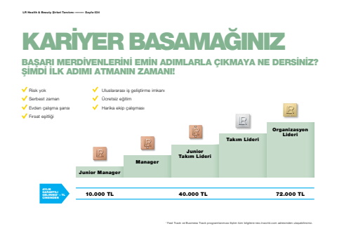 LR Health & Beauty %u015eirket Tan%u0131t%u0131m%u0131 %u2013%u2013%u2013%u2013%u2013%u2013%u2013%u2013 Sayfa 034KAR%u0130YER BASAMA%u011eINIZRisk yokSerbest zamanEvden %u00e7al%u0131%u015fma %u015fans%u0131F%u0131rsat e%u015fitli%u011fiUluslararas%u0131 i%u015f geli%u015ftirme imkan%u0131%u00dccretsiz e%u011fitimHarika ekip %u00e7al%u0131%u015fmas%u0131Junior ManagerJuniorTak%u0131m LideriManagerOrganizasyon LideriTak%u0131m LideriBA%u015eARI MERD%u0130VENLER%u0130N%u0130 EM%u0130N ADIMLARLA %u00c7IKMAYA NE DERS%u0130N%u0130Z?%u015e%u0130MD%u0130 %u0130LK ADIMI ATMANIN ZAMANI!AYLIK GARANTILI GELIRINIZ1 %u2013 TL CINSINDEN1 Fast Track ve Business Track programlar%u0131m%u0131za ili%u015fkin t%u00fcm bilgilere neo.lrworld.com adresinden ula%u015fabilirsiniz.10.000 TL 40.000 TL 72.000 TL