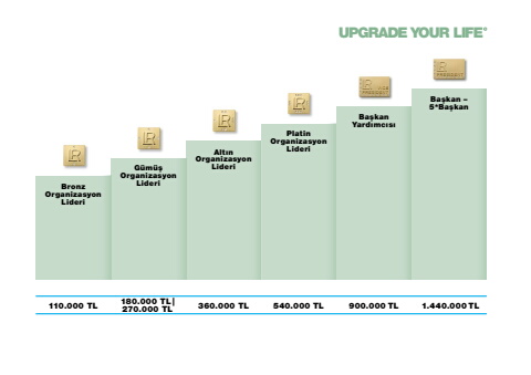 BronzOrganizasyonLideriG%u00fcm%u00fc%u015fOrganizasyonLideriAlt%u0131nOrganizasyon LideriPlatinOrganizasyon LideriBa%u015fkanYard%u0131mc%u0131s%u0131Ba%u015fkan %u20135*Ba%u015fkanUPGRADE YOUR LIFE110.000 TL 180.000 TL | 270.000 TL 360.000 TL 540.000 TL 900.000 TL 1.440.000 TL