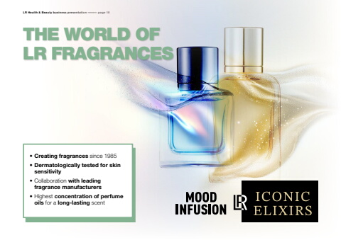 LR Health & Beauty business presentation %u2013%u2013%u2013%u2013%u2013%u2013%u2013%u2013 page 18%u2022 Creating fragrances%u00a0since 1985%u2022 Dermatologically tested for skin sensitivity%u2022 Collaboration with leading fragrance manufacturers%u00a0%u2022 Highest concentration of%u00a0perfume oils for a long-lasting scentTHE WORLD OF LR FRAGRANCES
