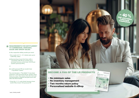 DEINE VORTEILE %u2013 EXKLUSIV BEI LRDE24_P_Partnerantrag_Profi_Business_Freie_Produktwahl_Juli%u2022 UMFANGREICHE INFO- UND PRINTMEDIEN%u2022 LR VORTEILSWELT%u2022 KEIN MONATLICHER MINDESTUMSATZ N%u00d6TIG %u2022 GRATIS STARBOX*%u2022 ONLINE SHOP %u2022 BACK OFFICE (MY OFFICE)%u2022 LR CONNECT APP* Nach erfolgter Teilnahme am Starterseminar und Folgebestellung innerhalb der ersten 3 Monate nach Besuch des StarterseminarsERH%u00d6HE DEINE ERFOLGSCHANCE MIT DEM PROFI BUSINESS EINSTIEGINHALT: Aloe Via Moments Set, Zeitgard Cleansing Cream, Guido Maria Kretschmer Eau de Parfum for Women, Jungle Man Eau de Parfum, ProBalance, Aloe Vera Drinking Gel Honey, Mind Master Formula Gold, 5in1 Beauty Elixir, Starbox, Zeitgard Face Cleansing Tool Adapter, Zeitgard Face Cleansing Brush, Zeitgard Pro Cosmetic Device%u2714STARTPAKET F%u00dcR NUR 29,90 %u20ac %u2013 100 PWRATENZAHLUNGM%u00d6GLICH+1500 PW NUR 584,80 %u20ac STATT 785,90 %u20acPARTNERANTRAGBECOME A FAN OF THE LR PRODUCTS PROFI BUSINESS / FREIE PRODUKTWAHL%u2022 No minimum sales%u2022 No inventory management%u2022 Two months return policy%u2022 Personalised website & eShopREQUIREMENTS FOR ENTITLEMENT TO COMMISSION, PERSONAL SALES AND GROUP SALES:In the respective billing month you need:%u2022 On a scale of 3 % %u2013 9 % (total sales up to 1,999 PV), either(a) Sponsoring of new first lines with a cumulative 250 PV per month and a personal turnover of at least 100 PV per month (\or(b) 1,000 personal PV per month from \You can become a \achieved 1,000 personal PV per month%u00b9 three times in a row. Your bonus from the first and second month is banked and paid out in full after the third month.%u2022 From the 11 % scale (total turnover from 2,000 PV) at least 100 personal PV*%u00b9 excl. of entry monthEND CUSTOMER ~ 40%PURCHASE COMMISSION