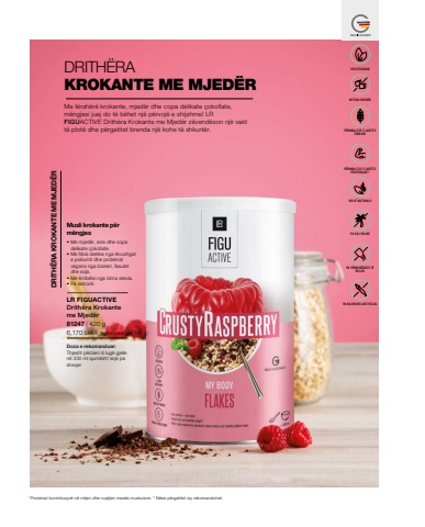 VEGAN ZUCKERFREIBALLASTSTOFFQUELLEHOHERPROTEINGEHALTNAT%u00dcRLICHEAROMENFREI VONGESCHMACKSVERST%u00c4RKERNFREI VONPALM%u00d6L6,170 Lek%u00eb (1,469 Lek%u00eb p%u00ebr 100 g)81247 | 420 g1 Proteinat kontribuojn%u00eb n%u00eb rritjen dhe ruajtjen mas%u00ebs muskulore. * N%u00ebse p%u00ebrgatitet si%u00e7 rekomandohet.DRITH%u00cbRA KROKANTE ME MJED%u00cbRMe t%u00ebrsh%u00ebr%u00eb krokante, mjed%u00ebr dhe copa delikate %u00e7okollate, m%u00ebngjesi juaj do t%u00eb b%u00ebhet nj%u00eb p%u00ebrvoj%u00eb e shijshme! LR FIGUACTIVE Drith%u00ebra Krokante me Mjed%u00ebr z%u00ebvend%u00ebson nj%u00eb vakt t%u00eb plot%u00eb dhe p%u00ebrgatitet brenda nj%u00eb kohe t%u00eb shkurt%u00ebr.Doza e rekomanduar: Thjesht p%u00ebrzieni 6 lug%u00eb gjelle n%u00eb 300 ml qum%u00ebsht soje pa sheqerLR FIGUACTIVEDrith%u00ebra Krokante me Mjed%u00ebr%u2022 Me mjed%u00ebr, arra dhe copa delikate %u00e7okollate.%u2022 Me fibra dietike nga l%u00ebvozhgat e psiliumit dhe proteinat vegane nga bizelet, fasulet dhe soja.%u2022 Me %u00ebmb%u00eblsi nga bima stevia. DRITH%u00cbRA KROKANTE ME MJED%u00cbR%u2022 Pa laktoz%u00eb.Musli krokante p%u00ebr m%u00ebngjesVEGJETARIANME PAK SHEQERP%u00cbRMBAJTJE E LART%u00cb E FIBRAVEP%u00cbRMBAJTJE E LART%u00cb E PROTEINAVE*SHIJE NATYRALEPA VAJ PALMEPA P%u00cbRMIR%u00cbSUES T%u00cb SHIJESPA NGJYRUES ARTIFICIAL