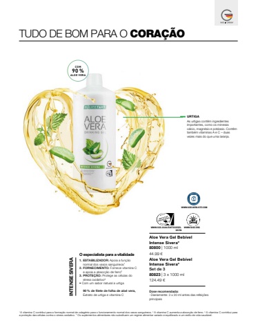 WWW.SGS-QUALITAETSSIEGEL.DE/ENWWW.IASC.ORGWWW.KOELNERLISTE.COM44.99 %u20ac124.49 %u20ac80800 | 1000 ml80823 | 3 x 1000 ml1A vitamina C contribui para a forma%u00e7%u00e3o normal de colag%u00e9nio para o funcionamento normal dos vasos sangu%u00edneos. 2 A vitamina C aumenta a absor%u00e7%u00e3o de ferro. 3 A vitamina C contribui para a prote%u00e7%u00e3o das c%u00e9lulas contra o stress oxidativo. * Os suplementos alimentares n%u00e3o substituem um regime alimentar variado e equilibrado e um estilo de vida saud%u00e1vel.TUDO DE BOM PARA O CORA%u00c7%u00c3OCOM90 % ALOE VERAAs urtigas cont%u00eam ingredientes importantes, como os minerais c%u00e1lcio, magn%u00e9sio e pot%u00e1ssio. Cont%u00eam tamb%u00e9m vitaminas A e C %u2013 duas vezes mais do que uma laranja.URTIGADose recomendada: %u2219 Diariamente: 3 x 30%u00a0ml antes das refei%u00e7%u00f5es principaisAloe Vera Gel Beb%u00edvelIntense Sivera*Aloe Vera Gel Beb%u00edvelIntense Sivera*Set de 31. ESTABILIZADOR: Apoia a fun%u00e7%u00e3o normal dos vasos sangu%u00edneos12. FORNECIMENTO: Fornece vitamina C e apoia a absor%u00e7%u00e3o de ferro23. PROTE%u00c7%u00c3O: Protege as c%u00e9lulas do stress oxidativo%u00b3%u2022 Com um sabor natural a urtiga90% de filete de folha de alo%u00e9 vera, INTENSE SIVERAExtrato de urtiga e vitamina CO especialista para a vitalidade