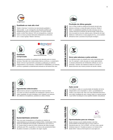 ANALYSENACHHALTIG &KLIMASCHONENDHOCHMODERNEFERTIGUNG FSC%u00ae N003255WWW.SGS-QUALITAETSSIEGEL.DE/EN5 %u201cMade in Germany%u201d %u00e9 sin%u00f3nimo da mais elevada qualidade a n%u00edvel mundial %u2013 e, por conseguinte, dos elevados padr%u00f5es que estabelecemos para os nossos produtos. Os nossos clientes podem confiar! Para oferecer 100% de transpar%u00eancia, rotul%u00e1mos todos os nossos produtos fabricados diretamente na Alemanha QUALIDADEcom o nosso log%u00f3tipo %u201cMade in Germany%u201d.Qualidade ao mais alto n%u00edvel Com a nossa moderna unidade de produ%u00e7%u00e3o de alo%u00e9 vera, estamos a refor%u00e7ar a nossa afirma%u00e7%u00e3o de sermos %u201cMade in Ahlen%u201d e a estabelecer padr%u00f5es em toda a Europa com as nossas m%u00e1quinas inovadoras de alta tecnologia. Desta forma, n%u00e3o s%u00f3 poupamos recursos valiosos para o transporte de longa dist%u00e2ncia e melhoramos a nossa pegada de CO2, como tamb%u00e9m PRODU%u00c7%u00c3Ootimizamos todo o processo de produ%u00e7%u00e3o ecol%u00f3gico. Produ%u00e7%u00e3o de %u00faltima gera%u00e7%u00e3oEstabelecemos padr%u00f5es de qualidade muito elevados para os nossos produtos. Para al%u00e9m dos nossos testes internos cont%u00ednuos, o cumprimento destas normas %u00e9 rigorosamente controlado e certificado por institutos independentes e reconhecidos. O SGS INSTITUT FRESENIUS, por exemplo, CERTIFICA%u00c7%u00c3Oconfirma a qualidade consistentemente elevada do Gel beb%u00edvel aloe vera.Qualidade comprovadaOs m%u00e9todos amigos do ambiente s%u00e3o muito importantes para n%u00f3s. Por exemplo, o alo%u00e9 vera para os nossos g%u00e9is beb%u00edveis %u00e9 cultivado inteiramente sem fertilizantes artificiais do solo ou pesticidas. Tamb%u00e9m n%u00e3o realizamos testes em animais no AMAMOS A NATUREZAdesenvolvimento dos nossos produtos de sa%u00fade e beleza.Amor pela natureza e pelos animaisSeleccionamos sempre os ingredientes dos nossos produtos com base nos %u00faltimos resultados de investiga%u00e7%u00e3o e apenas com a melhor qualidade. No setor da beleza e dos cuidados, por exemplo, INGREDIENTESn%u00e3o utilizamos micropl%u00e1sticos, parabenos ou %u00f3leos minerais.Ingredientes selecionados A LR%u00a0oferece a cada um a oportunidade de trabalhar de forma independente como empres%u00e1rio e, assim, a possibilidade de moldar a sua pr%u00f3pria vida. Para uma maior liberdade financeira e uma melhor qualidade de vida, a tempo inteiro ou a tempo parcial, SOCIALo que melhor se adequar ao seu equil%u00edbrio trabalho-vida pessoal.A%u00e7%u00e3o socialPara uma maior transpar%u00eancia, a LR%u00a0publica um relat%u00f3rio de sustentabilidade anual abrangente (relat%u00f3rio ESG). A eletricidade 100% verde nas instala%u00e7%u00f5es de produ%u00e7%u00e3o na Alemanha %u00e9 uma norma na LR. Quase todas as caixas de cart%u00e3o dobr%u00e1veis s%u00e3o feitas de papel certificado pelo FSC, as garrafas e os frascos s%u00e3o parcialmente feitos SUSTENTABILIDADEde pl%u00e1stico reciclado ou de pl%u00e1stico de origem vegetal.Sustentabilidade ambientalApoiar crian%u00e7as e jovens desfavorecidos e dar-lhes oportunidades de educa%u00e7%u00e3o para um futuro melhor %u00e9 importante para n%u00f3s. Com a LRGKF, a LR%u00a0tem vindo a apoiar iniciativas locais em 18 pa%u00edses europeus e na Coreia do Sul LR GLOBAL KIDS FUNDdesde 2009. Todas as informa%u00e7%u00f5es em www.lrgkf.comOportunidades para as crian%u00e7as