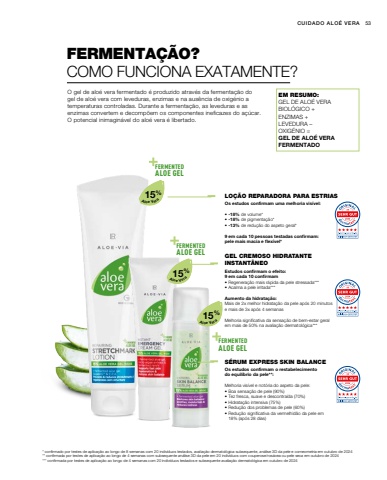 FERMENTEDALOE GELFERMENTEDALOE GELFERMENTEDALOE GELFERMENTEDALOE GELEYECREAMREFININGFERMENTEDALOE GELFERMENTEDALOE GEL15% ALOE VERA GEL INSIDEEMERGENCYCREAM GELINSTANT5 Pt5,5 PtStandardgr%u00f6%u00dfe >>> 6 Pt8 PtFERMENTEDALOE GELFERMENTEDALOE GELFERMENTEDALOE GELFERMENTEDALOE GELWith 50% aloe vera+fermented aloe gel& bio olive extractMoisturises & reduces fine linesEYE CREAMREFININGFERMENTEDALOE GELFERMENTEDALOE GEL5% ALOE VERA GEL INSIDE fermented aloe gel, micro algae extract & ermented reishiupports fast skin egeneration & estores skin balanceEMERGENCYCREAM GELNSTANT5 Pt5,5 PtStandardgr%u00f6%u00dfe >>> 6 Pt8 PtFERMENTEDALOE GELFERMENTEDALOE GELFERMENTEDALOE GELFERMENTEDALOE GEL5 Pt5,5 PtStandardgr%u00f6%u00dfe >>> 6 Pt8 Pt15%15%15%53 EM RESUMO:GEL DE ALO%u00c9 VERA BIOL%u00d3GICO +ENZIMAS +LEVEDURA %u2013 OXIG%u00c9NIO =GEL DE ALO%u00c9 VERAFERMENTADOO gel de alo%u00e9 vera fermentado %u00e9 produzido atrav%u00e9s da fermenta%u00e7%u00e3o do gel de alo%u00e9 vera com leveduras, enzimas e na aus%u00eancia de oxig%u00e9nio a temperaturas controladas. Durante a fermenta%u00e7%u00e3o, as leveduras e as enzimas convertem e decomp%u00f5em os componentes ineficazes do a%u00e7%u00facar. O potencial inimagin%u00e1vel do alo%u00e9 vera %u00e9 libertado.FERMENTA%u00c7%u00c3O?COMO FUNCIONA EXATAMENTE?LO%u00c7%u00c3O REPARADORA PARA ESTRIAS* confirmado por testes de aplica%u00e7%u00e3o ao longo de 8 semanas com 20 indiv%u00edduos testados, avalia%u00e7%u00e3o dermatol%u00f3gica subsequente, an%u00e1lise 3D da pele e corneometria em outubro de 2024** confirmada por testes de aplica%u00e7%u00e3o ao longo de 4 semanas com subsequente an%u00e1lise 3D da pele em 20 indiv%u00edduos com couperose/ros%u00e1cea ou pele seca em outubro de 2024*** confirmada por testes de aplica%u00e7%u00e3o ao longo de 4 semanas com 20 indiv%u00edduos testados e subsequente avalia%u00e7%u00e3o dermatol%u00f3gica em outubro de 2024Aloe VeraAloe VeraCUIDADO ALO%u00c9 VERA Aloe VeraOs estudos confirmam uma melhoria vis%u00edvel:%u2022 -18% de volume*%u2022 -18% de pigmenta%u00e7%u00e3o*%u2022 -13% de redu%u00e7%u00e3o do aspeto geral*9 em cada 10 pessoas testadas confirmam:pele mais macia e flex%u00edvel*GEL CREMOSO HIDRATANTE INSTANT%u00c2NEOEstudos confirmam o efeito:9 em cada 10 confirmam %u2022 Regenera%u00e7%u00e3o mais r%u00e1pida da pele stressada***%u2022 Acalma a pele irritada*** Aumento da hidrata%u00e7%u00e3o:Mais de 2x melhor hidrata%u00e7%u00e3o da pele ap%u00f3s 20 minutos e mais de 3x ap%u00f3s 4 semanasMelhoria significativa da sensa%u00e7%u00e3o de bem-estar geral em mais de 50% na avalia%u00e7%u00e3o dermatol%u00f3gica***S%u00c9RUM EXPRESS SKIN BALANCEOs estudos confirmam o restabelecimento do equil%u00edbrio da pele**: Melhoria vis%u00edvel e not%u00f3ria do aspeto da pele:%u2022 Boa sensa%u00e7%u00e3o de pele (90%)%u2022 Tez fresca, suave e descontra%u00edda (70%)%u2022 Hidrata%u00e7%u00e3o intensiva (75%)%u2022 Redu%u00e7%u00e3o dos problemas de pele (60%)%u2022 Redu%u00e7%u00e3o significativa da vermelhid%u00e3o da pele em 18% (ap%u00f3s 28 dias)