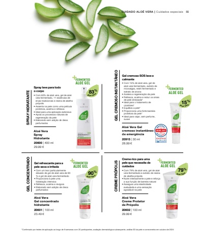 FERMENTEDALOE GELFERMENTEDALOE GELFERMENTEDALOE GELFERMENTEDALOE GEL5 Pt5,5 PStandardgr%u00f6%u00dfe >>> 6 Pt8 PtFERMENTEDALOE GELFERMENTEDALOE GELFERMENTEDALOE GELFERMENTEDALOE GEL5 Pt5,5 PtStandardgr%u00f6%u00dfe >>> 6 Pt8 PtFERMENTEDALOE GELFERMENTEDALOE GELFERMENTEDALOE GELFERMENTEDALOE GELWith 50% aloe vera+fermented aloe gel& bio olive extractMoisturises & reduces fine linesEYE CREAMREFININGFERMENTEDALOE GELFERMENTEDALOE GEL%ALOE VERA GEL INSIDErmented aloe gel, o algae extract & mented reishiports fast skin eneration & ores skin balanceERGENCYEAM GELTANT5 Pt5,5 PtStandardgr%u00f6%u00dfe >>> 6 Pt8 PtFERMENTEDALOE GELFERMENTEDALOE GELFERMENTEDALOE GELFERMENTEDALOE GELCONCENTRATED90% ALOE VERA GEL INSIDEMADE IN GERMANYRefreshing all-purpose gelWith highest aloe vera gelconcentration + fermented aloe gelIntensively moisturises,calms & cools dry skinFERMENTEDALOE GELWith 50% aloe vera+fermented aloe gel& bio olive extractMoisturises & reduces fine linesEYE CREAMREFININGFERMENTEDALOE GELFERMENTEDALOE GEL15% ALOE VERA GEL INSIDE+ fermented aloe gel, micro algae extract & fermented reishiSupports fast skin regeneration & restores skin balanceEMERGENCYCREAM GELINSTANT5Standardgr%u00f6%u00dfe >>> 83% 15%79%90%55 29.99 %u20ac23.49 %u20ac 29.99 %u20ac20600 | 400 ml 28.99 %u20ac20601 | 100 ml20915 | 30 ml20602 | 100 mlCUIDADO ALO%u00c9 VERA | Cuidados especiais*Confirmado por testes de aplica%u00e7%u00e3o ao longo de 8 semanas com 20 participantes, avalia%u00e7%u00e3o dermatol%u00f3gica subsequente, an%u00e1lise 3D da pele e corneometria em outubro de 2024Aloe VeraAloe VeraAloe VeraAloe VeraAlo%u00e9 Vera Spray Hidratante%u2022 Com 83% de alo%u00e9 vera, gel de alo%u00e9 vera fermentado, 11 ess%u00eancias de ervas tradicionais e resina de abelha pr%u00f3polis%u2022 Assenta na pele como uma pel%u00edcula protetora, acalma e refresca%u2022 Ideal para uma aplica%u00e7%u00e3o extensiva%u2022 Apoia os processos naturais de regenera%u00e7%u00e3o da pele%u2022 Elaborado sem adi%u00e7%u00e3o de %u00f3leos SPRAY HIDRATANTEperfumadosSpray leve para todo o corpoAlo%u00e9 VeraGel concentrado hidratante%u2022 Com um teor particularmente elevado de gel de alo%u00e9 vera de 90 % e gel de alo%u00e9 vera fermentado%u2022 Proporciona %u00e0 pele uma hidrata%u00e7%u00e3o intensiva%u2022 Refresca, acalma e revigora%u2022 Elaborado sem adi%u00e7%u00e3o de %u00f3leos perfumadosGel refrescante para a pele seca e irritada GEL CONCENTRADOAlo%u00e9 Vera Gel cremoso instant%u00e2neo de emerg%u00eancia%u2022 Com 15% de alo%u00e9 vera, gel de alo%u00e9 vera fermentado, extrato de microalgas, reishi fermentado e extrato de anona%u2022 Acelera a regenera%u00e7%u00e3o da pele%u2022 Refresca, acalma e reduz os sinais de pele stressada*%u2022 Ideal para o tratamento de cicatrizes*%u2022 Equilibra a pele*%u2022 Proporciona uma forte barreira protetora da pele*%u2022 Ideal para viajar, sem perfume, GEL CREMOSO INSTANT%u00c2NEOsuaveGel cremoso SOS leve e calmante Alo%u00e9 VeraCreme Protetorde Pr%u00f3polis%u2022 Com 79% de alo%u00e9 vera, gel de alo%u00e9 vera fermentado e extrato de resina de abelha pr%u00f3polis%u2022 Nutre intensamente a pele e refor%u00e7a a sua fun%u00e7%u00e3o de barreira natural%u2022 Assegura uma elasticidade aveludada e uma sensa%u00e7%u00e3o CREME PR%u00d3POLISagrad%u00e1vel na peleCreme rico para uma pele que necessita de cuidados