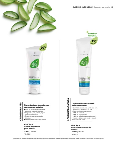 FERMENTEDALOE GELFERMENTEDALOE GELFERMENTEDALOE GELFERMENTEDALOE GELNTRATEDERA GEL INSIDEMADE IN GERMANYpurpose geloe vera gel fermented aloe gelsturises,ry skinFERMENTEDALOE GELWith 50% aloe vera+fermented aloe gel& bio olive extractMoisturises & reduces fine linesEYE CREAMREFININGFERMENTEDALOE GELFERMENTEDALOE GEL15% ALOE VERA GEL INSIDE+ fermented aloe gel, micro algae extract & fermented reishiSupports fast skin regeneration & restores skin balanceEMERGENCYCREAM GELINSTANT5 Pt5,5 PtStandardgr%u00f6%u00dfe >>> 6 Pt8 Pt30%15%65 13.29 %u20ac 46.49 %u20ac27517 | 100 ml 20920 | 150 mlCUIDADO ALO%u00c9 VERA | Cuidados corporais*Confirmado por testes de aplica%u00e7%u00e3o ao longo de 8 semanas com 20 participantes, avalia%u00e7%u00e3o dermatol%u00f3gica subsequente, an%u00e1lise 3D da pele e corneometria em outubro de 2024Aloe VeraAloe VeraAlo%u00e9 VeraCreme Reparadorpara os P%u00e9sAlo%u00e9 VeraCuidado reparador de estrias%u2022 Com 30 % de gel de alo%u00e9 vera e extrato de magn%u00f3lia biol%u00f3gica %u2022 Regenera a pele gretada, %u00e1spera e particularmente seca%u2022 Proporciona uma hidrata%u00e7%u00e3o intensiva CREME PARA P%u00c9S%u2022 Deixa a pele flex%u00edvel e bem nutridaCreme de r%u00e1pida absor%u00e7%u00e3o para p%u00e9s %u00e1speros e gretados %u2022 Com 15% de alo%u00e9 vera, gel de alo%u00e9 vera fermentado, Regestril%u2122 e CICA%u2022 Efeito confirmado por estudos*: -18% de volume* -18% de pigmenta%u00e7%u00e3o* -13% de redu%u00e7%u00e3o da sensa%u00e7%u00e3o geral*%u2022 Hidrata e deixa a pele macia e flex%u00edvel%u2022 sem perfume, suave LO%u00c7%u00c3O REPARADORALo%u00e7%u00e3o nutritiva para prevenir e reduzir as estrias