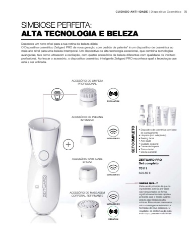 +VIBRATIONULTRASONICSULTRASONICSULTRASONICSOSCILLATION75 629.89 %u20ac70111ACESS%u00d3RIO DE PEELING INTENSIVOACESS%u00d3RIO DE LIMPEZA PROFISSIONALACESS%u00d3RIO ANTI-IDADE EFICAZACESS%u00d3RIO DE MASSAGEM CORPORAL REFIRMANTESABIAS QUE...?Parte-se do princ%u00edpio de que os ingredientes activos anti-idade s%u00e3o transportados de forma significativamente mais r%u00e1pida e profunda para o tecido cut%u00e2neo atrav%u00e9s das vibra%u00e7%u00f5es ultras%u00f3nicas. Estas atuam como uma micro-massagem e estimulam a forma%u00e7%u00e3o de novo colag%u00e9nio. O resultado: os contornos do rosto e do corpo parecem mais firmesCUIDADO ANTI-IDADE | Dispositivo Cosm%u00e9ticoSIMBIOSE PERFEITA:ALTA TECNOLOGIA E BELEZADescobre um novo n%u00edvel para a tua rotina de beleza di%u00e1ria:O Dispositivo cosm%u00e9tico Zeitgard PRO de nova gera%u00e7%u00e3o com pedido de patente* %u00e9 um dispositivo de cosm%u00e9tica ao mais alto n%u00edvel para uma beleza intemporal. Um dispositivo de alta tecnologia excecional, que combina tecnologias avan%u00e7adas, tais como ultrassom e oscila%u00e7%u00e3o, com quatro acess%u00f3rios de beleza diferentes com qualidade de instituto profissional. Ao trocar o acess%u00f3rio, o dispositivo cosm%u00e9tico inteligente Zeitgard PRO reconhece qual a tecnologia que est%u00e1 a ser utilizada.ZEITGARD PROSet completo%u2022 Dispositivo de cosm%u00e9tica com base de carregamento%u2022 Limpeza (incl. adaptador)%u2022 Peeling facial %u2022 Anti-idade%u2022 Cuidado corporal%u2022 Creme de limpeza%u2022 T%u00f3nico facial SET COMPLETO%u2022 Creme corporal