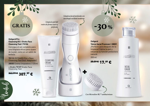 limiteds+-30 %200 ml 362.99 %u20ac 307.89 %u20ac25.59 %u20ac 17.89 %u20acLimpia la piel del rostro de forma suave y profundaLimpieza facial profunda con tecnolog%u00eda oscilante modernaCon Microsilver BG%u2122 antibacterianoGRATISZeitgard ProCleansing Kit + Gratis Face Cleansing Tool |%u00a07010670110 ZEITGARD Pro + Face Cleansing Tool (incl. Adaptador)28000 Crema limpiadora |%u00a0125ml+ Gratis 70107 Gratis Face Cleansing ToolConsigue el set completo para una limpieza eficaz pero suave de la piel, como en un sal%u00f3n de belleza.Zeitgard T%u00f3nico facial Premium |%u00a028001%u00a1Perfecto para despu%u00e9s de la limpieza! Calma la piel y refuerza su funci%u00f3n protectora natural.