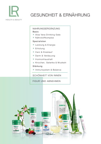 GESUNDHEIT & ERN%u00c4HRUNGNAHRUNGSERG%u00c4NZUNGBasis%u2022 Aloe Vera Drinking Gele%u2022 N%u00e4hrstoffkomplexSpezialisten%u2022 Leistung & Energie%u2022 Erholung %u2022 Herz & Kreislauf%u2022 Darm & Verdauung%u2022 Hormonhaushalt%u2022 Knochen, Gelenke & MuskelnSt%u00e4rkung%u2022 Immunsystem & BalanceSCH%u00d6NHEIT VON INNENFIGUR UND ABNEHMEN